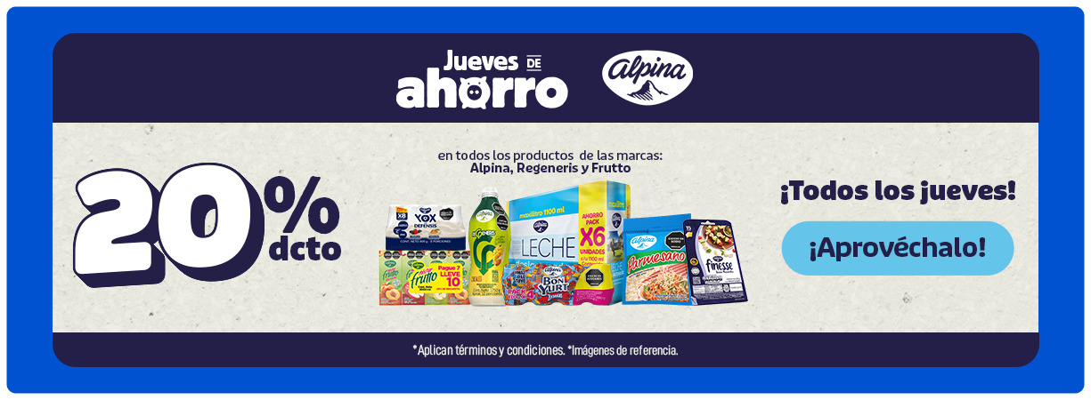 Oferta especial limitada LECHE ALPINA ENTERA PQx6 UNIDADx1.100 MILILITRO $ 35.928 $ 44.910 -20% Comprar